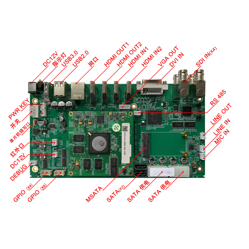 Hi3531DV100定制開發(fā)板提供4K@30 HDMI輸入、4K@30 HDMI輸入、4K@30輸出、1080P@60輸出、1080P SDI 輸入、1080P DVI 輸入、 USB3.0、USB2.0、SATA、2路10M/100M/1000網(wǎng)絡、RS232、RS485、GPIO等豐富外圍接口。